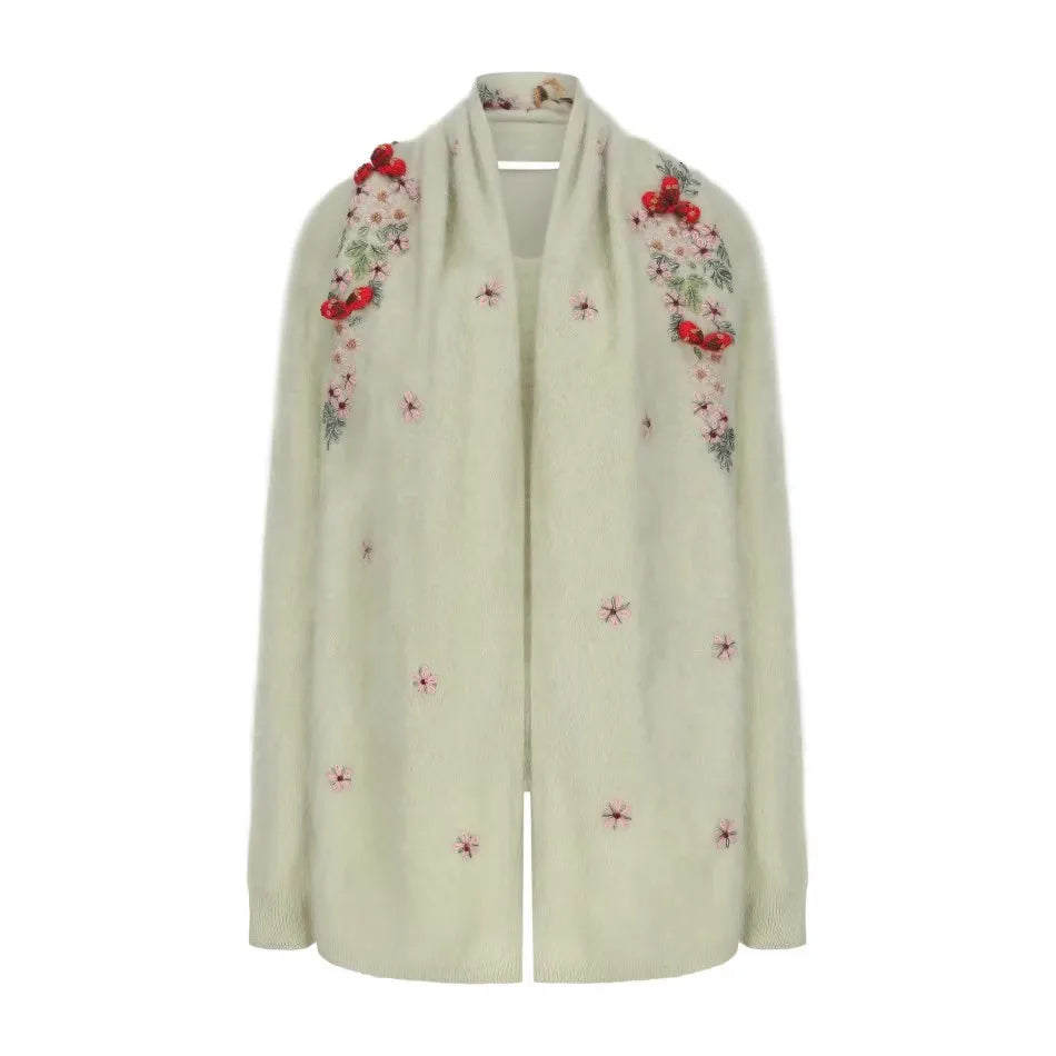 Annette Cashmere Sweater & Scarf Set, Matcha Green