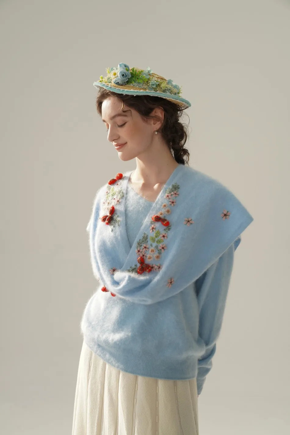 Embroidered Beret Wool Hat
