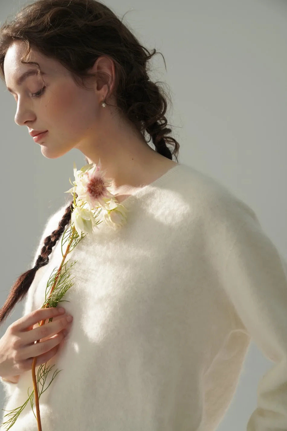 Annette Cashmere Sweater & Scarf Set, White